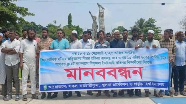ভিসি’র সমর্থনে কুয়েট কর্মচারীদের মানববন্ধন