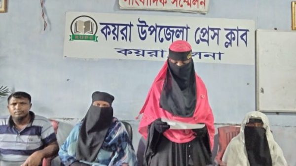 কয়রায় এক যুগ পর স্বামী হত্যার বিচারের দাবীতে স্ত্রীর সংবাদ সম্মেলন