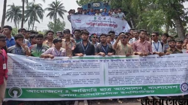 খুলনায় ট্রেন আটকে দিল শিক্ষার্থীরা, সারাদেশের সঙ্গে যোগাযোগ বন্ধ