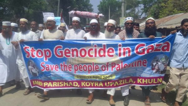 জাহিদুল ইসলাম,কয়রা(খুলনা)প্রতিনিধি ||ফিলিস্তিনে অবৈধ ইসরাইলি বাহিনীর হামলা, হত্যাযজ্ঞ আল-আকসা রক্ষা এবং মার্চ ফর গাজা কর্মসুচী বাস্তবায়নের লক্ষে বিক্ষোভ মিছিল ও