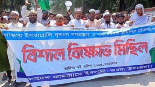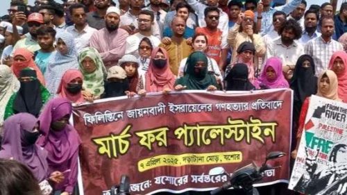 ফিলিস্তিনে ভূখণ্ডে গণহত্যার প্রতিবাদে ফুঁসে উঠেছে যশোরের ছাত্র-জনতা