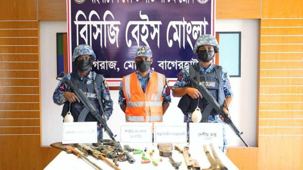 সুন্দরবনে কোস্ট গার্ডের অভিযান, দু’টি দেশীয় একনলা বন্দুক’সহ ১১ রাউন্ড গুলি জব্দ