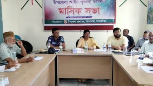 এস এম তাজুল হাসান সাদ,স্টাফ রিপোর্টার| |সাতক্ষীরার আশাশুনি উপজেলায় আইন শৃঙ্খলা কমিটির মাসিক সভা অনুষ্ঠিত হয়েছে। সোমবার (১৯ মে) সকাল