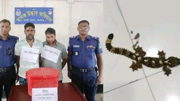 মোঃ জসিম উদ্দিন তুহিন,যশোর জেলা প্রতিনিধি ||যশোরের শার্শায় অভিযান চালিয়ে বন্যপ্রাণী তক্ষক নামক সাপসহ করিম হোসেন(৪৮) ও মামুনুর রশীদ(৪২) নামে