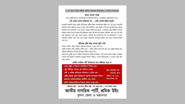 খুলনায় মে দিবস পালনের প্রস্তুতি,তে নগরীর বিভিন্ন থানাতে গণসংযোগ করবে – শ্রমিক উইং, এনসিপি