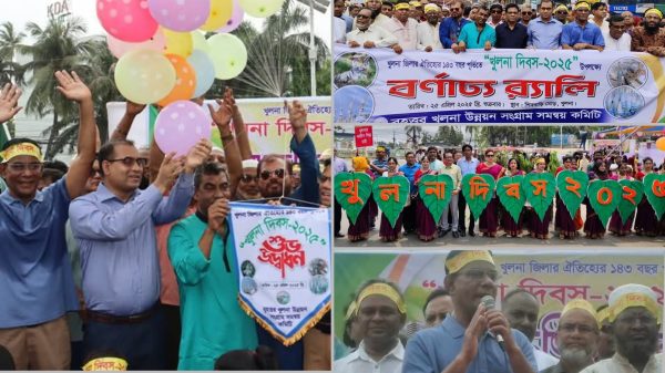 ইমরুল ইসলাম ইমন, খুলনার খবর ||খুলনা জেলা প্রতিষ্ঠার ১৪৩ বছর পূর্তিতে বৃহত্তর খুলনা উন্নয়ন সংগ্রাম সমন্বয় কমিটির উদ্যোগে শুক্রবার বর্ণাঢ্য