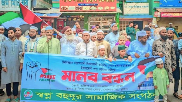 শেখ মোঃ নাসির উদ্দীন, খুলনা ||আজ শুক্রবার (১৮ এপ্রিল) জুমার নামাজ বাদ খুলনা নগরীর অন্যতম প্রাণকেন্দ্র সোনাডাঙ্গা হাফিজ নগর মোড়ে