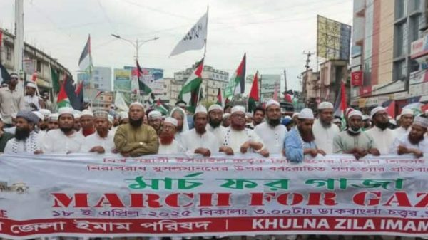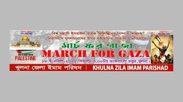 ইমরুল ইসলাম ইমন,খুলনার খবর ||খুলনা জেলা ইমাম পরিষদের উদ্যোগে ফিলিস্তিনে ইসরাইল কর্তৃক গণহত্যা বন্ধের দাবিতে ‘মার্চ ফর গাজা’ কর্মসূচি আজ,