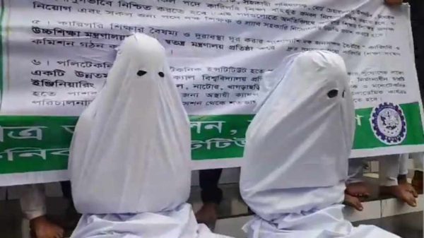 ইমরুল ইসলাম ইমন খুলনার খবর ||৬ দফা দাবি আদায়ে মাথায় সাদা কাপড় বেঁধে ‘কাফন মিছিল’ করেছেন সরকারি ও বেসরকারি পলিটেকনিক