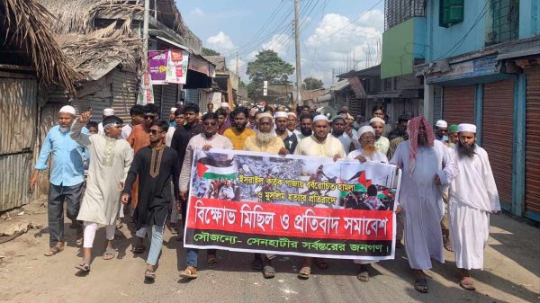 ফিলিস্তিনে ইজরায়েলি বাহিনী কর্তৃক গণহত্যা ও বর্বরোচিত হামলার প্রতিবাদে সেনহাটিতে বিক্ষোভ মিছিল ও সমাবেশ