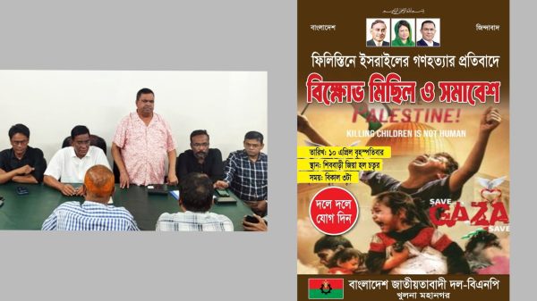 ইমরুল ইসলাম ইমন, খুলনার খবর ||সারা বিশ্বের নির্যাতিত মুসলিমদের পাশে দাঁড়ান আহবান জানিয়ে খুলনা মহানগর বিএনপি’র সভাপতি এড. শফিকুল আলম