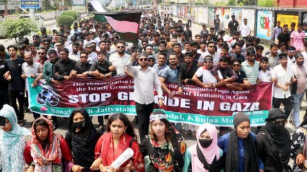 ইমরুল ইসলাম ইমন, খুলনার খবর ||ফিলিস্তিনের গাজায় ইসরায়েলি দখলদার বাহিনীর বর্বরোচিত গণহত্যার প্রতিবাদে গণসমাবেশ, মানববন্ধন ও বিক্ষোভ মিছিল করেছে খুলনা