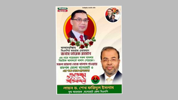 অতনু চৌধুরী(রাজু)বাগেরহাট জেলা প্রতিনিধি||পবিত্র ঈদুল ফিতর উপলক্ষে বাগেরহাট – ৩ আসন তথা রামপাল – মোংলার সর্বস্তরের জনগণকে ঈদের শুভেচ্ছা জানিয়েছেন বাগেরহাট