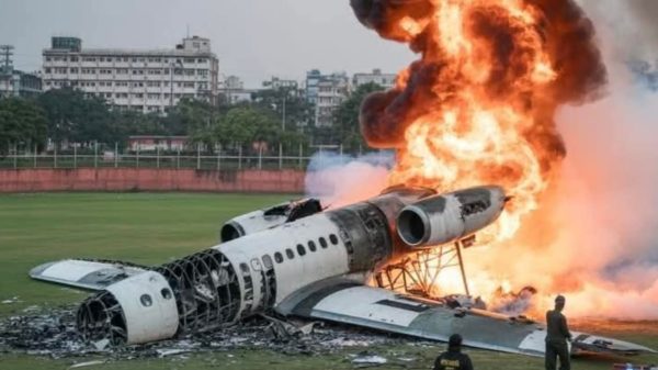 খুলনার খবর || রাজধানীর উত্তরায় বিমান বাহিনীর একটি প্রশিক্ষণ বিমান (ফাইটার জেট) বিধ্বস্ত। সোমবার (২১ জুলাই) উত্তরা মাইলস্টোন কলেজপ্রাঙ্গণে এই