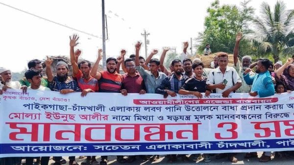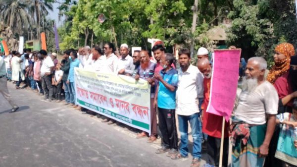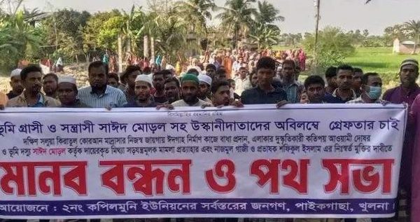 পাইকগাছায় সাঈদ মোড়লের বিরুদ্ধে মানববন্ধন করল এলাকাবাসী