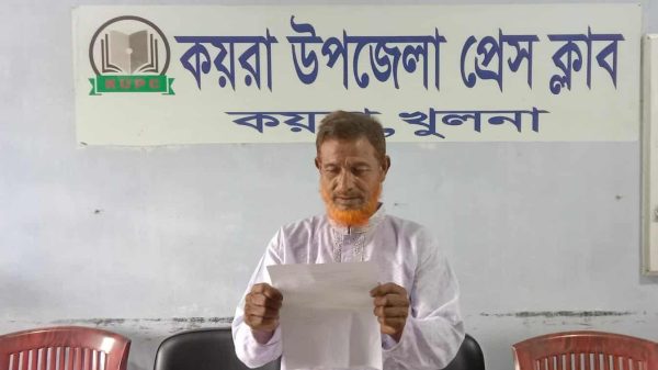কয়রায় রেকর্ডীয় সম্পত্তি জোর পূর্বক দখলের অভিযোগে সংবাদ সম্মেলন