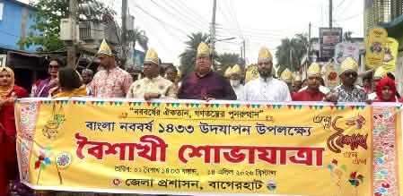 অতনু চৌধুরী (রাজু) বাগেরহাট|| বিপুল উৎসাহ উদ্দীপনা ও বর্ণাঢ্য আয়োজনের মধ্যে দিয়ে সারাদেশের ন্যায় বাগেরহাটেও বাংলা নববর্ষ ১৪৩৩ উদযাপন করা